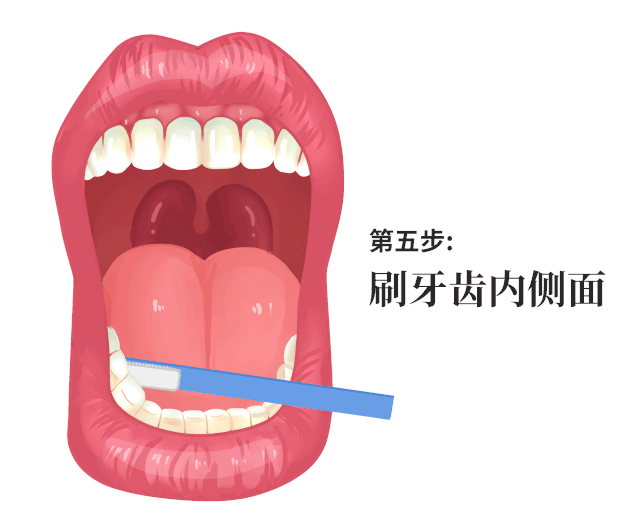 而后,在牙龈和牙齿交界处轻轻做小圆弧状来回刷,上排的牙齿向下、下排的牙齿往上轻刷(不可用力过猛),确保每个牙齿表面都被刷到,并注意轻刷牙龈。